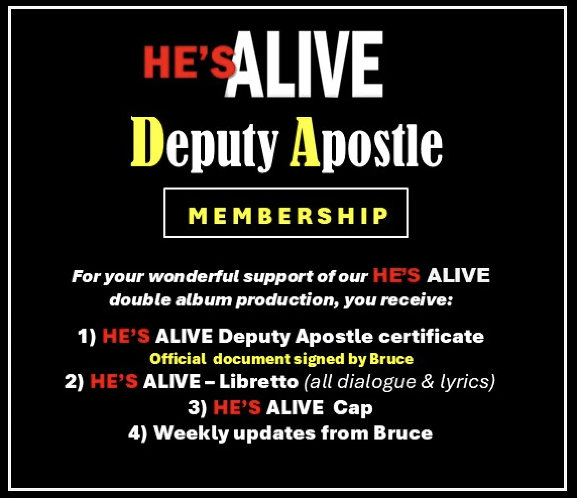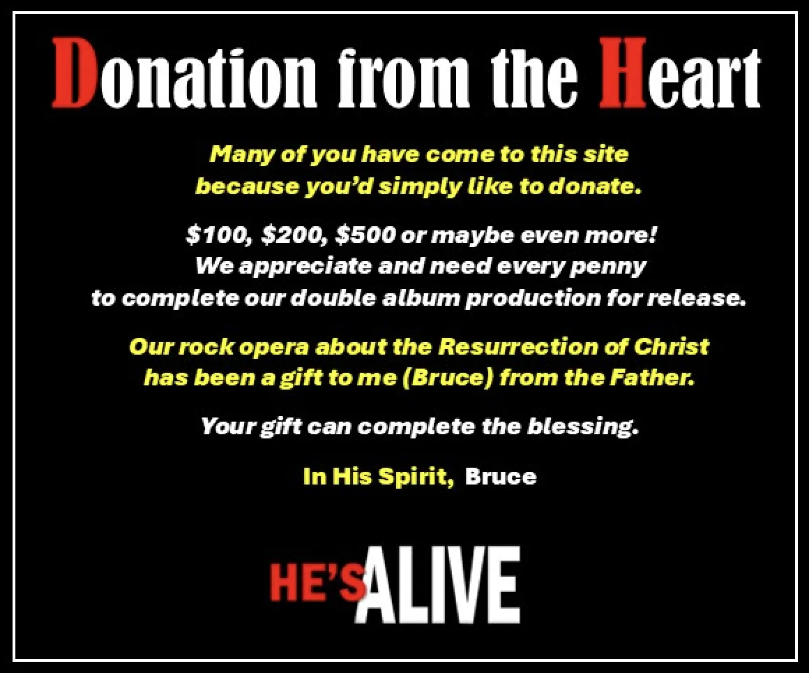 us to consider? HE’S ALIVE t-shirts, sweatshirts, cups, auctions, podcasts? Please go