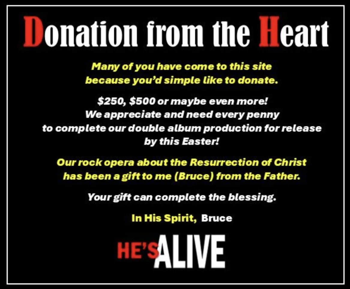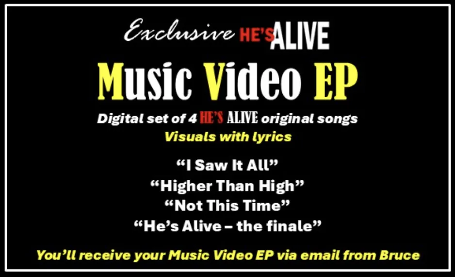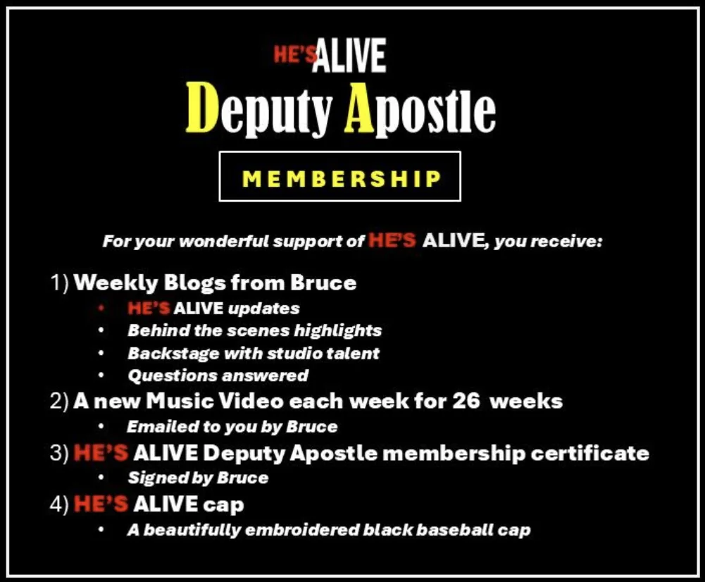us to consider? HE’S ALIVE t-shirts, sweatshirts, cups, auctions, podcasts? Please go